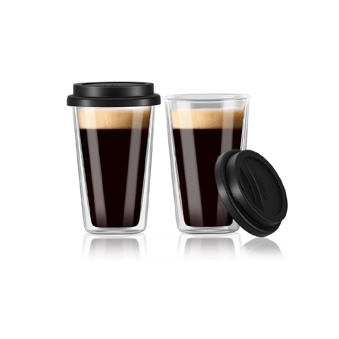 Made from high-quality borosilicate glass and equipped with a silicone lid, these transparent mugs have a capacity of 350ml, providing a pleasant and elegant visual experience.